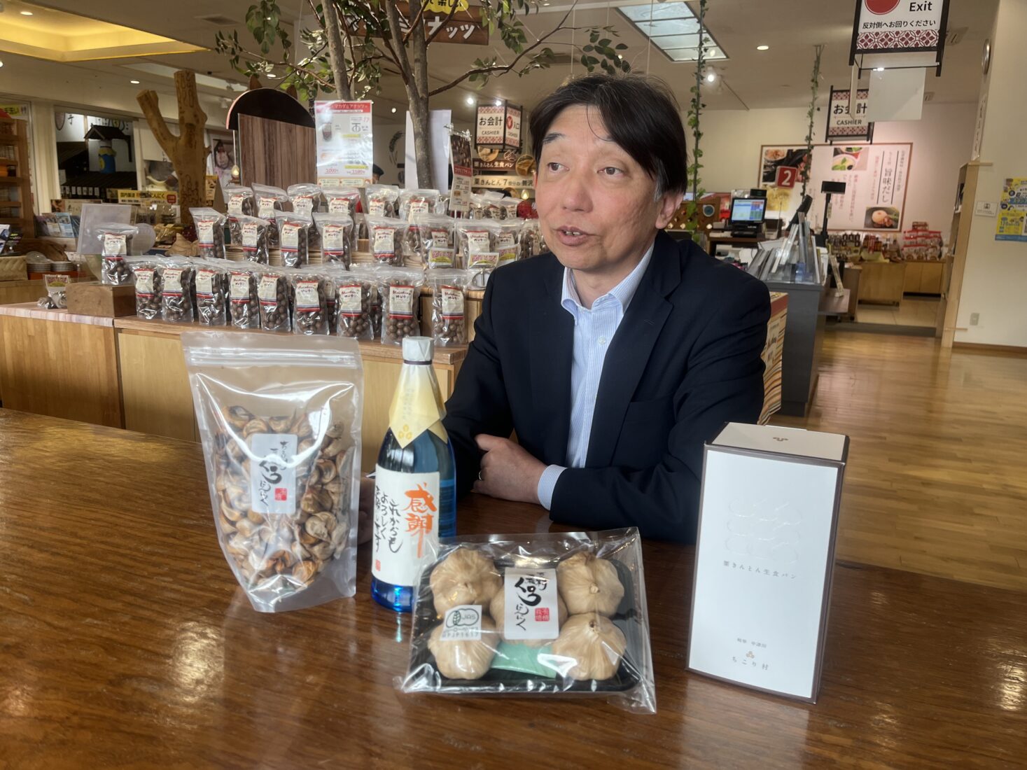 ちこり村は当社が運営する教育型観光生産施設であり、オンラインショップでは栗きんとん生食パンや黒にんにく、おせち、焼酎など幅広く販売しています。焼酎は社員が鹿児島で修行をして、自社で製造しているこだわりの商品です。加えて、量販店さんを中心に、BtoBでも野菜・スプラウトの販売を行っています。