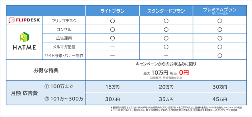 本プランは、WEB接客ツール「Flipdesk」を活用し、サイト訪問者の行動に合わせた最適な情報表示を実現。加えて、ソーシャルメディア広告・メルマガ配信・サイト改修・商品登録・バナー制作など、集客から運営までをワンストップで支援するトータルソリューションです。